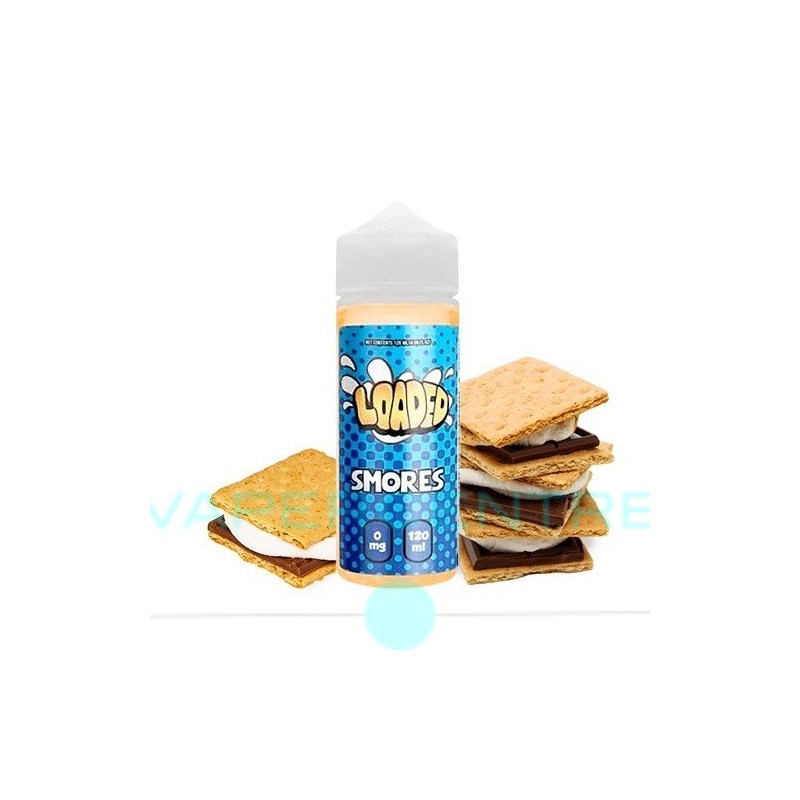 Loaded Smores 100ml. ¡Sumérgete en la nostalgia de las fogatas con nuestro e-líquido sabor s'mores! Esta deliciosa mezcla de sabores te transportará a las noches junto al fuego, combinando la riqueza del chocolate, la dulzura de los malvaviscos y la textura crujiente de las galletas en cada bocanada.