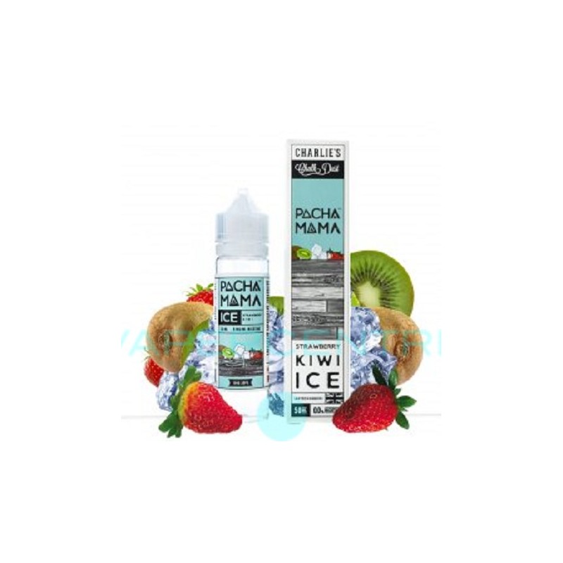 El líquido Strawberry Kiwi Ice de Pachamama by Charlie's Chalk Dust tiene un sabor a fresa con wiki y un toque helado a frescor que te conquistará.